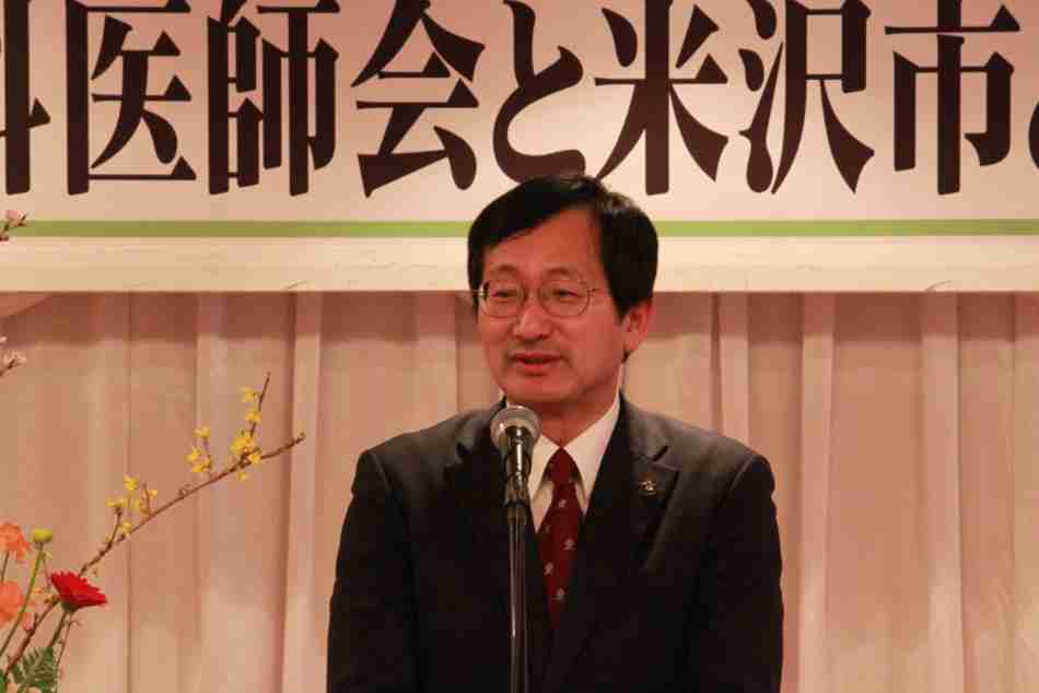 平成24年2月21日(火)午後6時よりホテルサンルート米沢において米沢市歯科医師会と米沢市との懇談会が行われた。はじめに米沢市市長、安部 三十郎より歯科医師会の活動に対し感謝の言葉を頂いた。引き続き米沢市歯科医師会会長、五十嵐 栄会長より挨拶を頂き本年は米沢市歯科医師会の高橋 誠君が、米沢市における「在宅寝たきり者等訪問歯科診療」への取り組みと題し講話を行った。内容としては訪問診療が始まる経緯や事業に対する米沢市の協力や始まってから10年間のデーター等の講話があり会場にいた出席者は真剣に耳を傾けていた。講話のあとは、歯科医師会副会長、鈴木 一則より乾杯の発声があり米沢市の職員の方々と協力事業などに対しての意見交換を行い親交を深めた。
