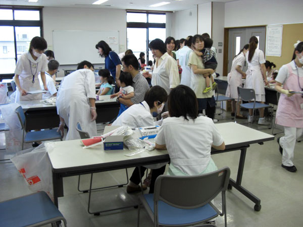 平成24年6月2日(土)午後2時より、一般社団法人米沢市歯科医師会主催「無料歯科健診と相談」が今年も歯の衛生週間にあわせて開催された。今年度も昨年同様、米沢市すこやかセンター・米沢市東部コミュニティーセンター・米沢市万世コミュニティセンターの3会場で行われた。米沢市歯科医師会の会員歯科医師19名、各歯科医院スタッフ51名の参加・協力のもと滞りなく歯科健診と相談が行われた。来場者の数を考えると来場者全員にRDテストの実施は難しいことが準備段階で考えられたため、すこやかセンター以外の会場でのみ実施することとなった。当日は好天に恵まれ、すこやかセンターで211名、東部コミュニティーセンターで67名、万世コミュニティセンターで37名と各会場とも前年を上回る来場者数を記録した。すこやかセンターではかなりの混雑が認められたため、RDテストを行わなかったのは正解であった。これだけ来場者が多いと大盛況であることがうれしい悲鳴でもある。今後も来場者数の増加が予想されるため、各会場にあったスタイルを検討していく必要があると思われた。